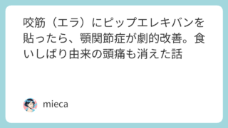 ライフ 咬筋(エラ)にピップエレキバンを貼ったら、顎関節症が劇的改善。食いしばり由来の頭痛も消えた話