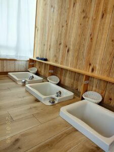 足湯桶ひとつひとつに蛇口がついていて、自分で温度調節できるのも良い。