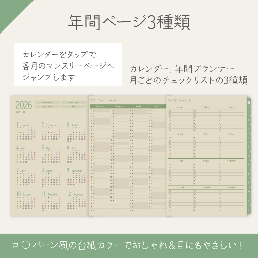 - 年間プランナー 一年分の予定をざっくりと俯瞰できます。