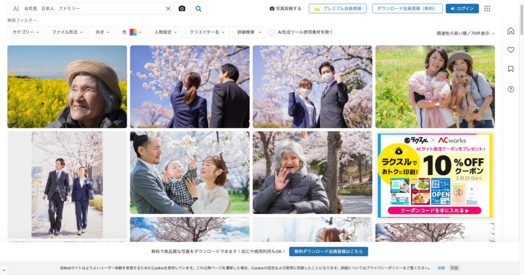 わたしのイチオシ!今回紹介する写真acでも、同じ検索キーワードで検証してみます。https://www.photo-ac.com/