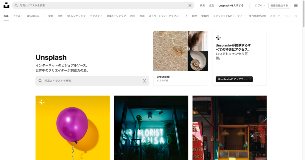 カナダの企業が運営する、シンプルな使い勝手が魅力のフリー写真素材サイトです。https://unsplash.com/ja
