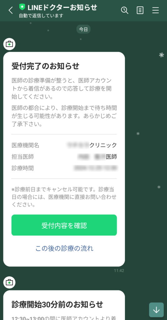 受付が完了すると、LINEでメッセージが届きます。
