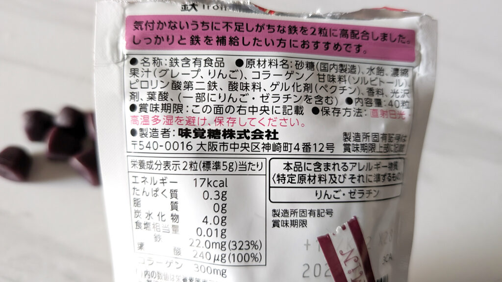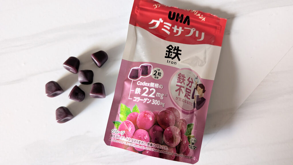 「鉄分入りのグミって美味しくないのでは?」と思ったけど、普通にブドウ味で美味しい! ちょっとだけ鉄の風味はあるけど、私は全然気にならなかったよ。