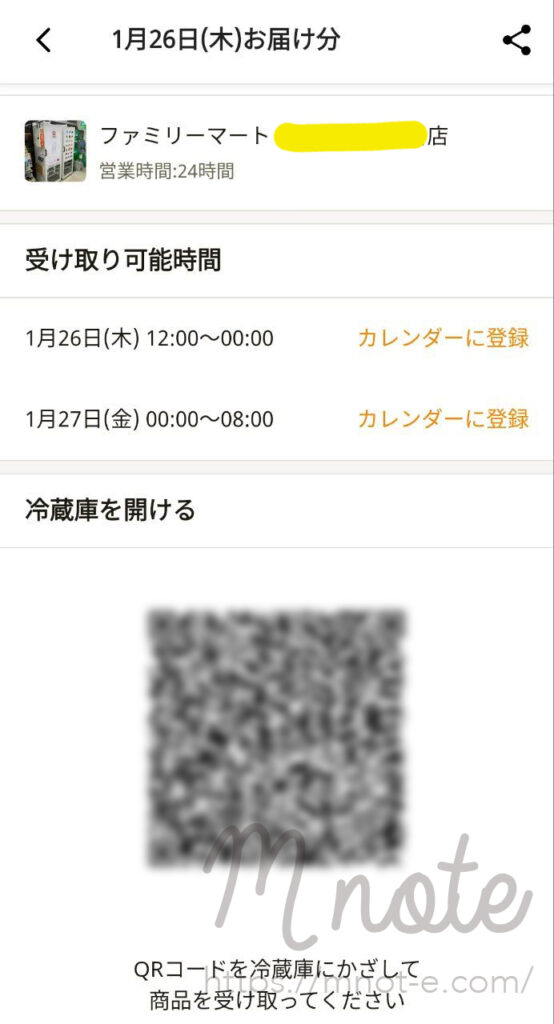 アプリから受け取り画面にいくと、専用ロッカーを解錠するためのQRコードを表示させることが出来ます。