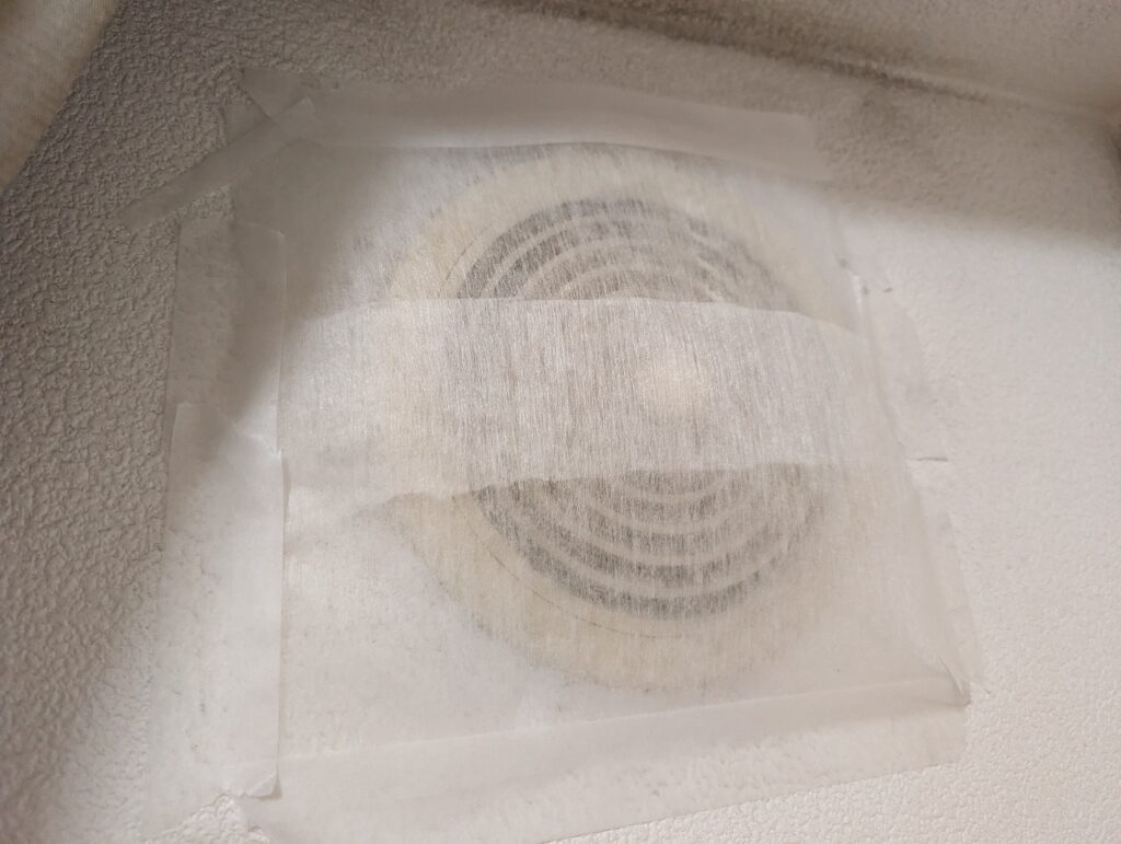 - レンジフードフィルターをカット:給気口のサイズに合わせてカット。私はレンジフードに貼ったシートの余りを使いました。